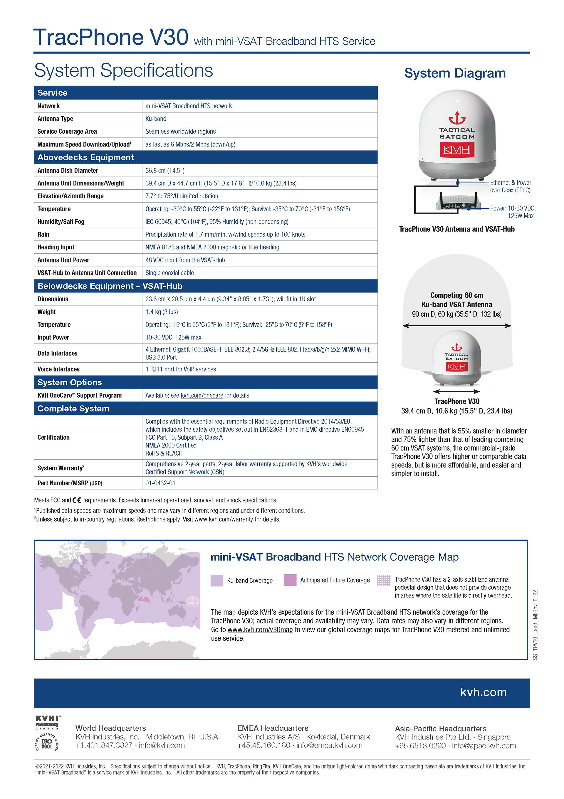 KVH Industries' satellite TV and satellite communications antennas are well known in the Leisure marine and commercial maritime markets but are not as globally recognized as products in the military and government space. This presents a roadblock for our sales teams as the image of the product was not recognized as the rugged and reliable product that that it is and is required for acceptance in the Mil/Gov sector. Branding and supporting literature of the TracPhone V30, is mainly directed toward the leisure marine and commercial maritime markets. With a rapidly approaching opportunity to present the product to several key military customers time was short.